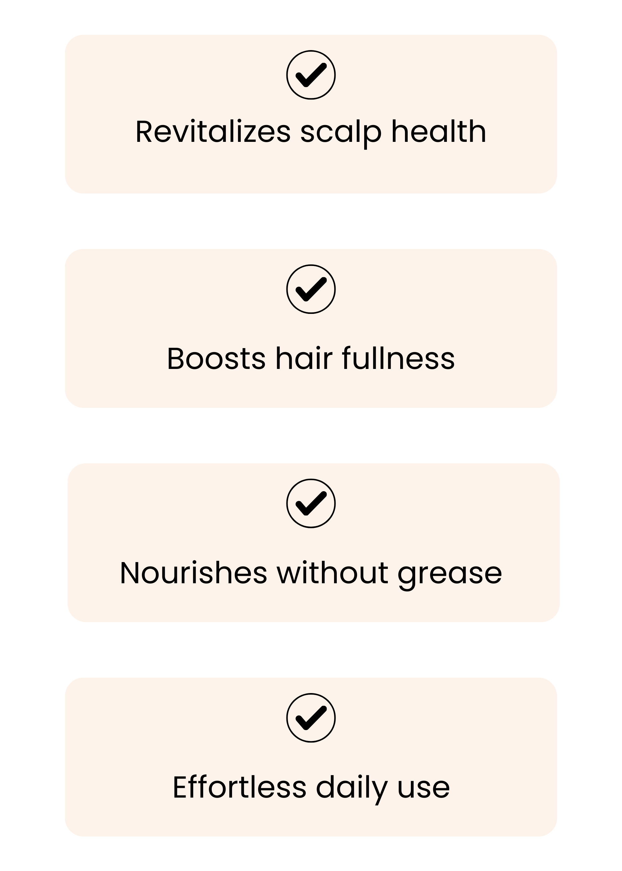 Not at all! Our lightweight formula is designed to deeply nourish your hair without leaving any greasy residue. You’ll enjoy noticeably healthier hair without the weighed-down feeling that some other products can cause.