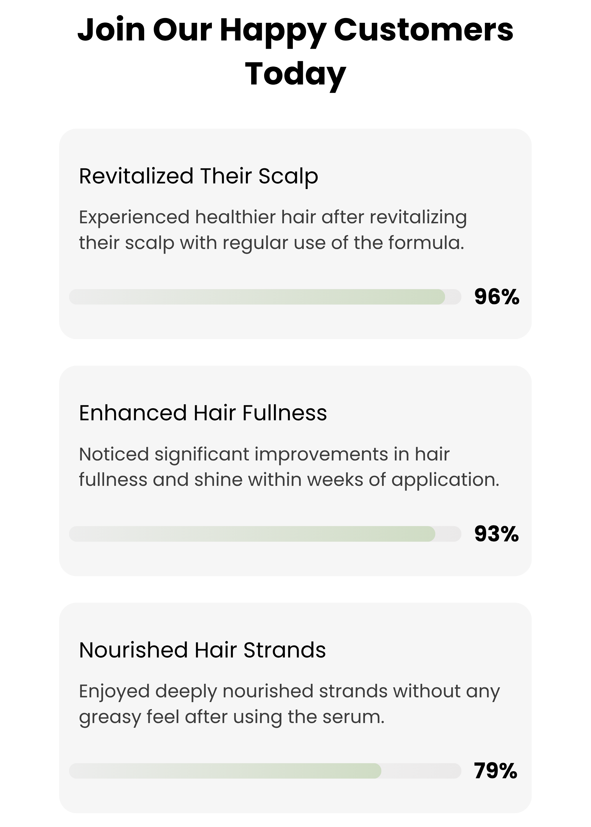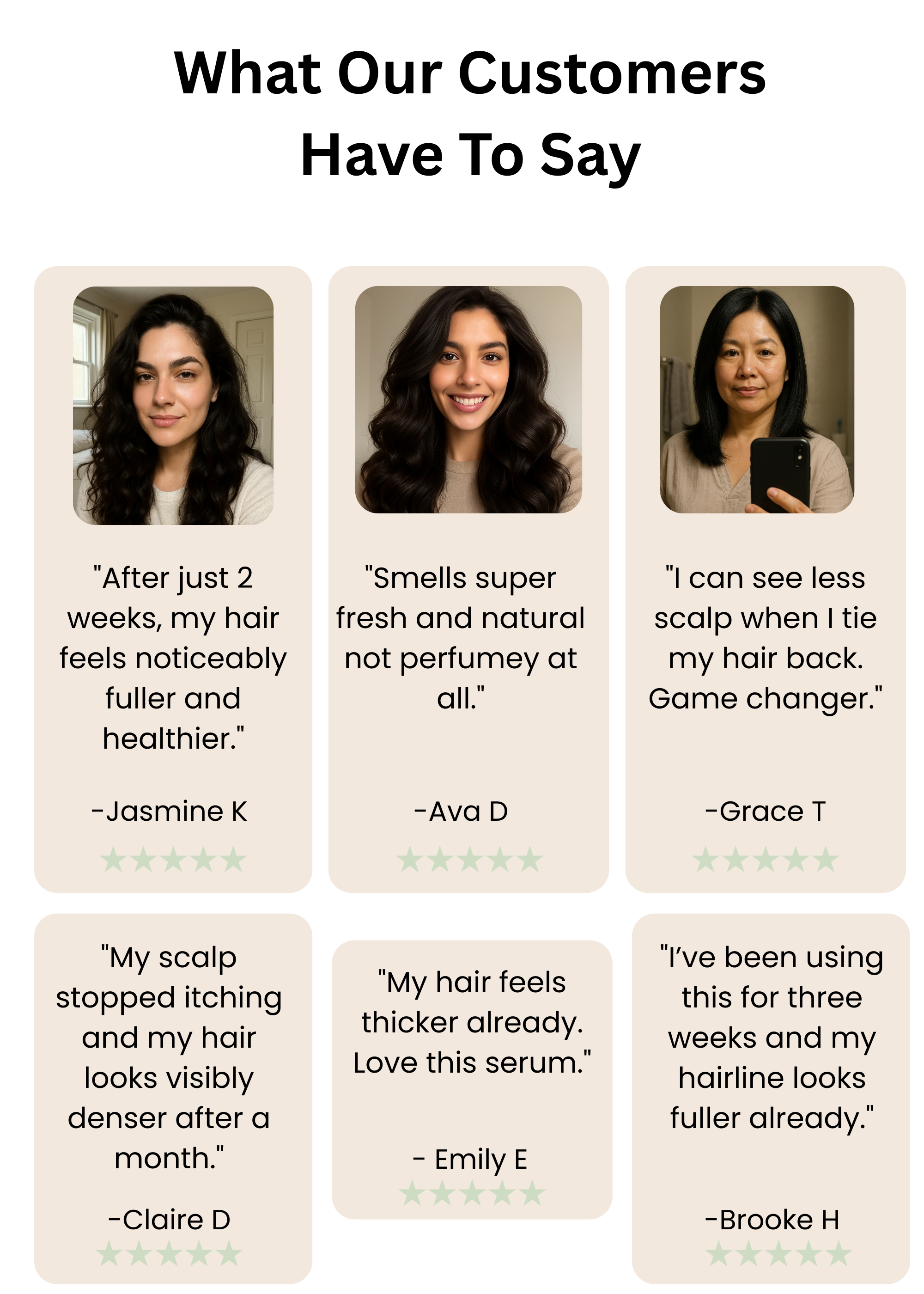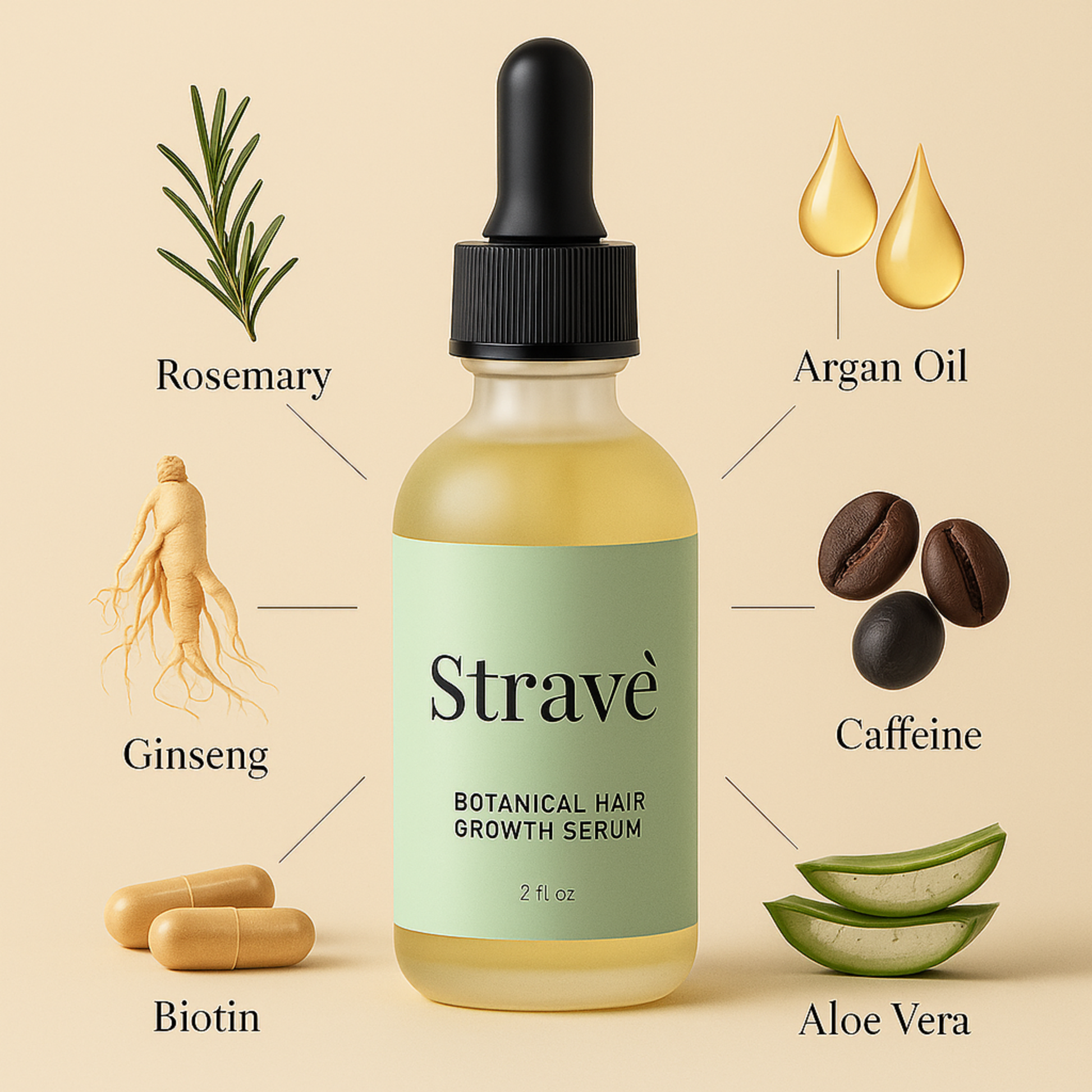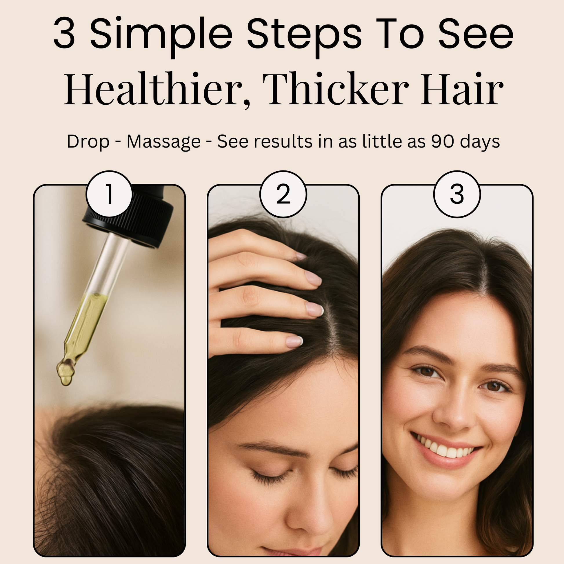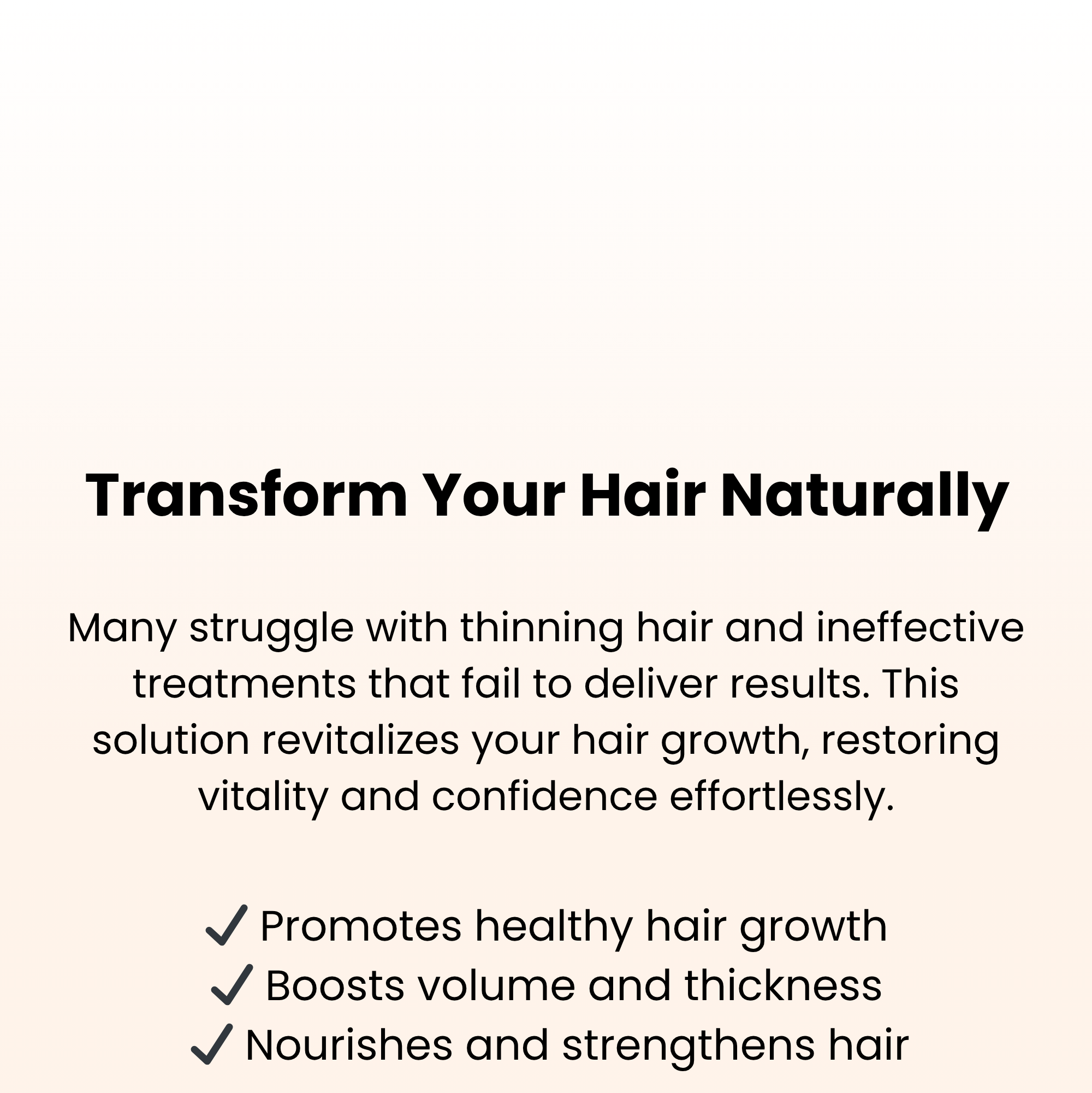 Our serum is crafted from a blend of natural botanicals, including essential oils and vitamins that nourish and strengthen your hair. Each ingredient is chosen for its proven benefits in promoting hair growth and overall scalp health.